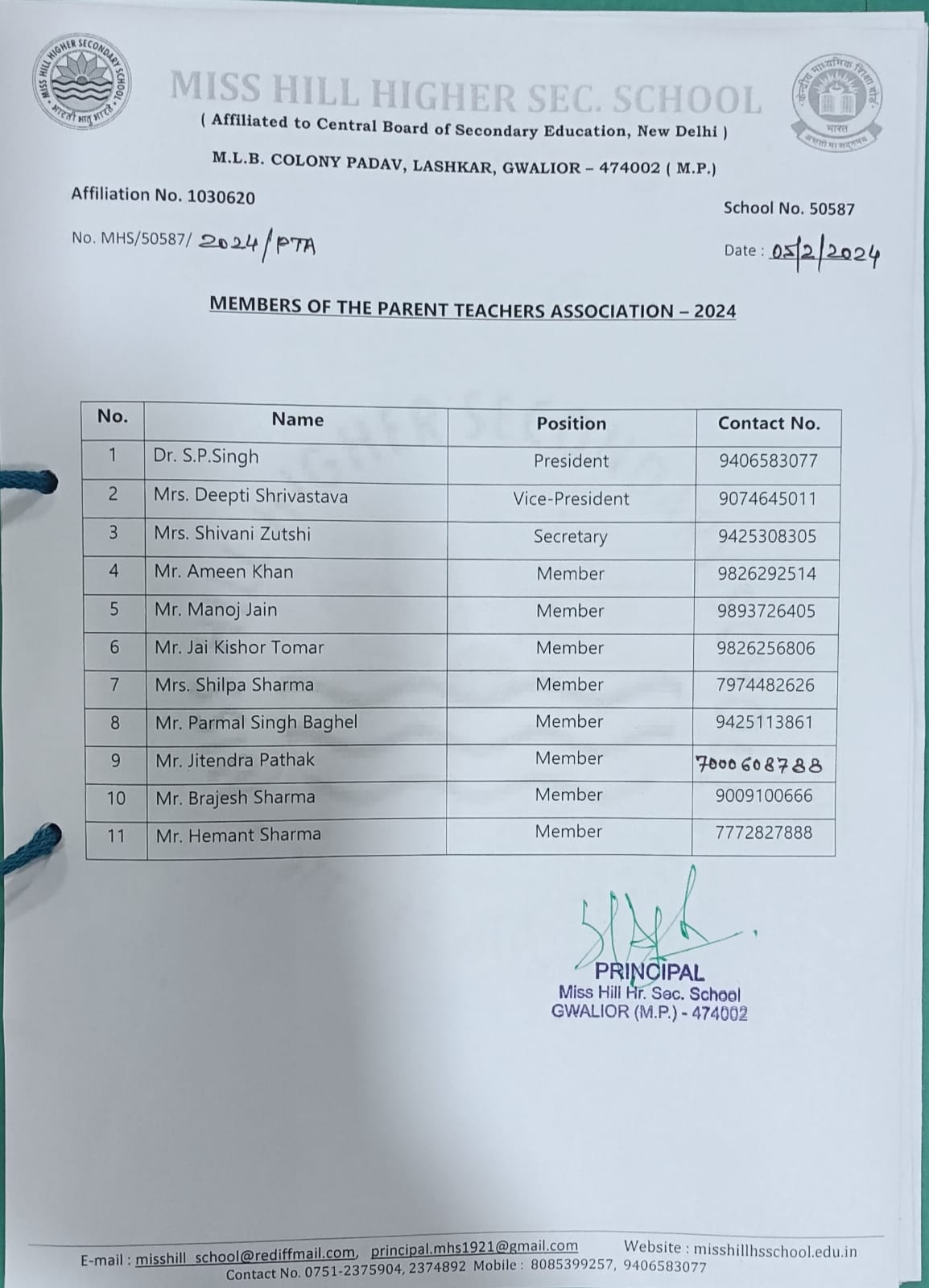 05 | Principal Name & Qualification | Dr. S. P. Singh (M.Sc., M.Ed., P.hd.) | |||
